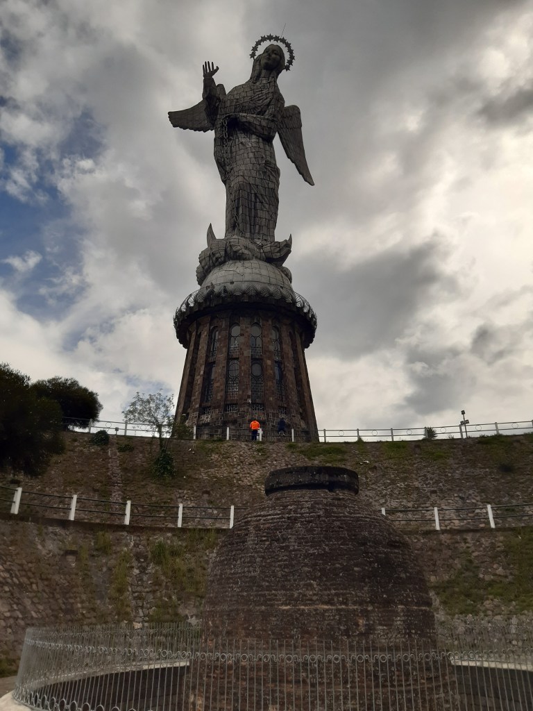 …a na závěr pár fotografií z Quita, hlavního města Ekvádoru. Dominantou města je veliká socha anděla, nebo vlastně spíš okřídlené Panny Marie – Virgen del Panecillo. Je to ochránkyně města, ale také cestovatelů a poutníků. Měří 41 metrů a je to nejvyšší socha v Ekvádoru a také nejvyšší hliníková socha na světě. Kopec, na kterém je vystavěna, se jmenuje Panecillo a má nadmořskou výšku 3016m. Je tam nádherný výhled na celé město. Vždycky se tam vydrápu. A počkám, až se setmí, abych viděla rozzářené město.