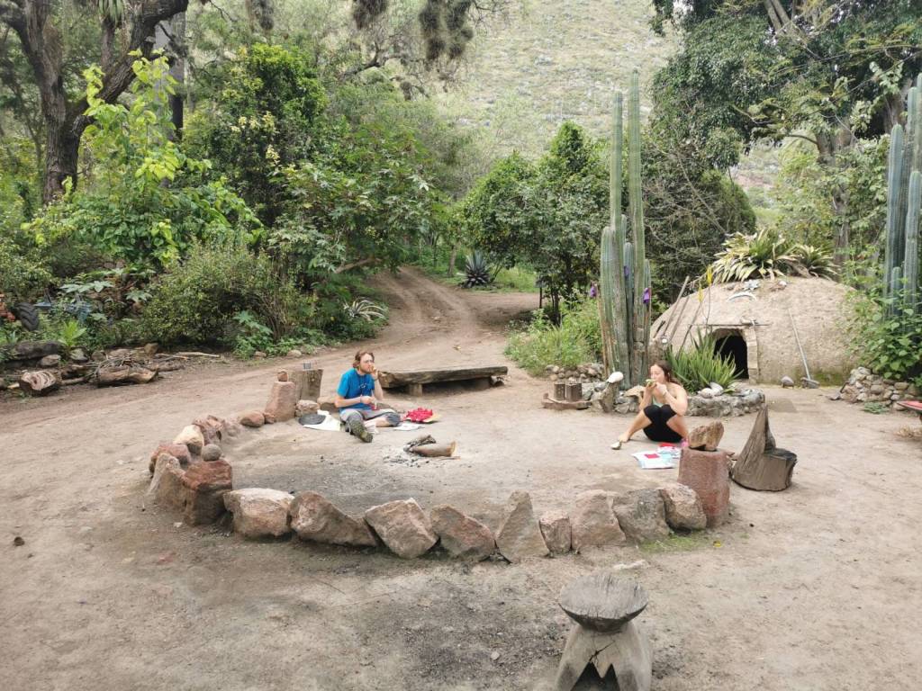 Potní chýše, kaktus San Pedro a posvátný oheň, který zde místní šaman udržuje již 25 let, od doby, kdy byl zasvěcen do svého poslání