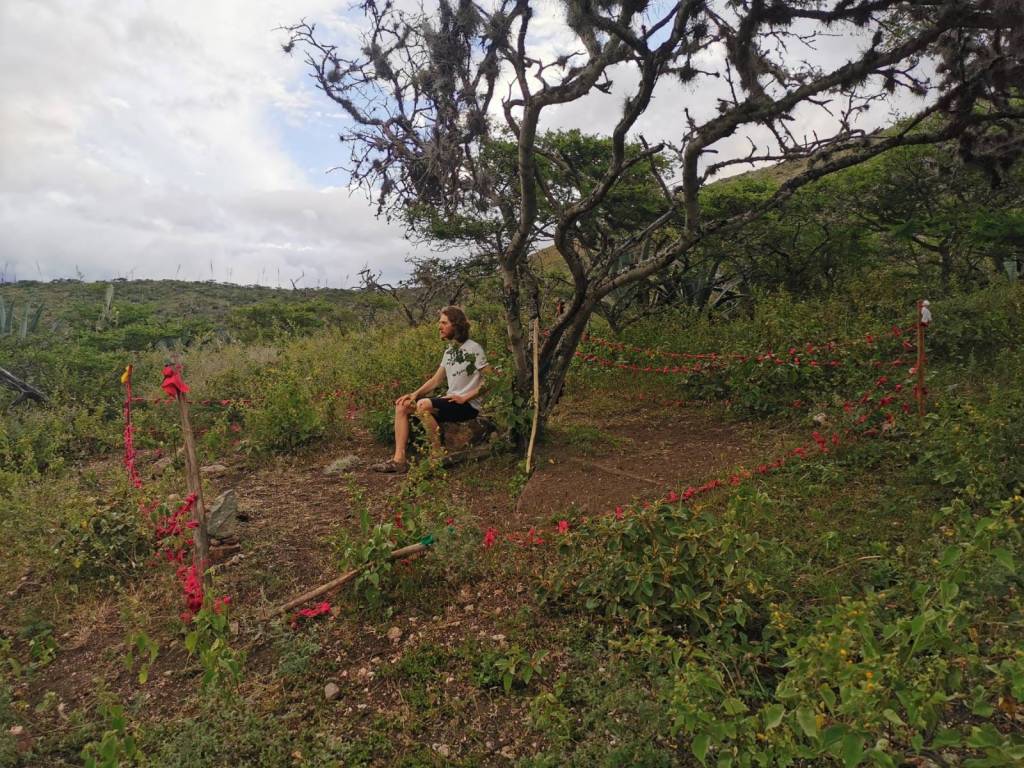 Jak vlastně celé to hledání vize vypadá…no, příprava začíná už doma dietou, přípravou záměru, se kterým na vizi jedete a vymýšlením a zapisováním 365 modliteb pro sebe, pro blízké, pro Matku Zemi, pro všechny lidi na planetě, jak to kdo cítí a potřebuje…nákupem potřebného materiálu – červené vlny a červené látky na modlitby a tabáku na modlitby a pro šamana. Před samotným rituálem si každou z předem připravených 365 modliteb v duchu zvědomíte, nebo i nahlas pronesete, procítíte v srdci, „vložíte“ ji do špetky tabáku a zabalíte do pytlíčku z červené látky, který navážete na červenou vlnu. Nakonec vám vznikne dlouhatánský červený provaz, na kterém je navázáno všech 365 modliteb a ten bude na čtyři dny tvořit stěny vašeho domova. Kolem stromu, u kterého budete pobývat, budou zatlučeny čtyři kůly, k nim přivázány modlitby do čtyř světových stran a kolem nich bude omotáno vaše dílo z červené vlny, obvykle ve třech nebo čtyřech vrstvách. A to celé se uděje někde o samotě v přírodě, v našem případě v ekvádorských horách.