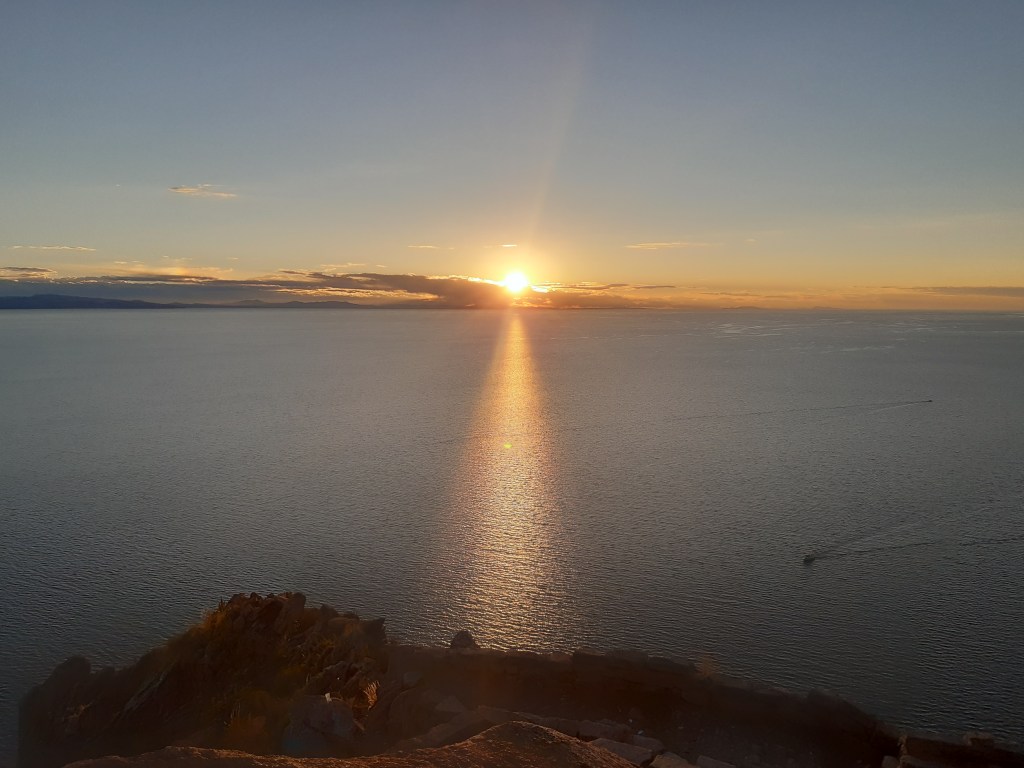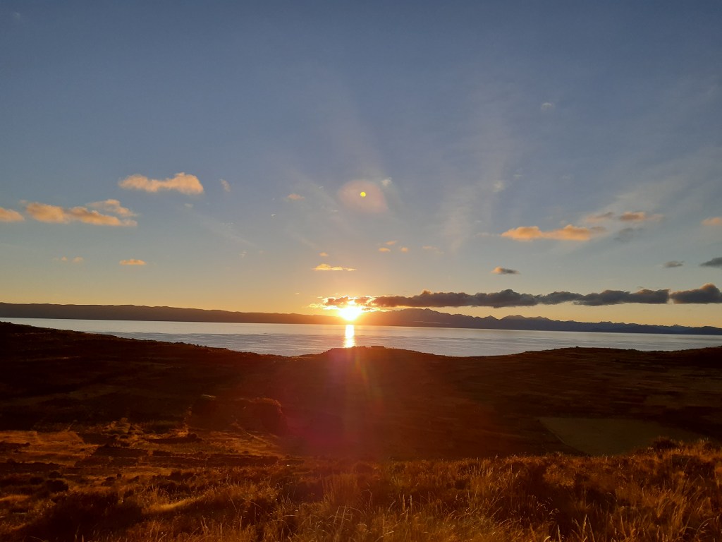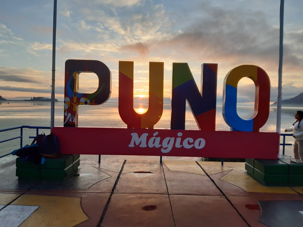 Návštěva těchto dvou ostrovů, ostrova Slunce a Měsíce, byla cílem mé cesty k jezeru Titicaca, a ani přes komplikace spojené s kovidem, jsem se jich nechtěla vzdát. Oba ostrovy se nacházejí na bolivijské straně a normálně se tam dá dostat lodí z Peru, tentokrát se to ale nedalo, hranice byla uzavřená. A opět mi kdosi, jen tak mezi řečí, řekl, že do Bolívie se dá přejít mimo hraniční přechod. Po partyzánském zážitku s nelegálním přechodem hranic z Ekvádoru do Peru jsem po dalším podobném zážitku extra neprahla, ale zůstala jsem věrná svému „jestli tam mám být, tak se tam nějak dostanu“ a nechala jsem to osudu. K jezeru jsem se přesunula nočním autobusem z Cuzca, který mě dovezl do města Puno, tzv. hlavního města této oblasti. Když jsem brzy po šesté ranní vyšla z autobusového nádraží bez nějakého konkrétního cíle, na hledání ubytování bylo ještě brzy, vydala jsem se jen tak nazdařbůh jednou ulicí a ta mě po zhruba deseti minutách zavedla přímo k jezeru, kde mě vítal východ slunce. Tak to BYLO teda PŘIVÍTÁNÍ. Magické ráno.