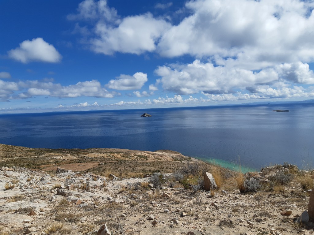 Pouť po ostrovech předčila mé očekávání, bylo to velmi silné, měla jsem štěstí na poctivého průvodce. V sedm večer jsem mu oznámila svojí představu, on obratem domluvil loďku, nocleh, stravu a na druhý den v devět ráno jsme vyrazili za dobrodružstvím. Strávili jsme spolu dva nádherné dny, vodil mě na posvátná místa, kde mě nechával dlouho o samotě meditovat, hodně mi vyprávěl a také jsme spolu prošli poutní cestu Inků na severním konci ostrova, při níž jsme vykonali několik posvátných rituálů. Jídlo a ubytování bylo perfektní. Samotná plavba po jezeře byla – zase musím použít to slovo – prostě magická. Loďka klouzala po klidné hladině a ta nádherná modrá prozářená sluníčkem mě vtahovala dovnitř a já se do ní vpíjela a to, co jsem cítila, byla čistočistá blaženost, byla jsem naprosto okouzlená. V jednu chvíli loďka maximálně zpomalila, aby bezpečně proplula průlivem v prstenci skal, které vystupují nad hladinu. Když tím místem proplujete, ocitnete se v jiném světě. V jiné dimenzi. Před vámi se náhle vynoří ostrov Měsíce a vy jste k němu přitahováni silou magnetu. Po levé straně míjíte ostrov Slunce, do jehož strání se opírají sluneční paprsky, zatímco v dáli před vámi se majestátně tyčí zasněžené vrcholky hor, před nimiž z vody vyvstává ten tajuplný ostrov Měsíce, ke kterému míříte. Máte pocit, že ukrývá nějaké tajemství, vzbuzuje ve vás velkou zvědavost…při vzpomínce na ten čas strávený na jezeře mě mrazí. Neumím to dát do slov. Ani do fotek, ale přece jen…