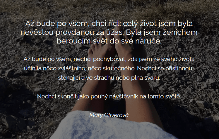 K tomu mě jen napadá, že svět hmoty je sice pomíjivý, ale co to slavné TADY A TEĎ. Co to vlastně znamená. Nosit vodu, štípat dříví. Dnes a denně se v klidu vypořádávat s běžnými úkoly, které nám život staví do cesty a moc nad tím nešpekulovat. V sobotu na tancovačku a v neděli jít do kostela na mši. Naše babičky to dobře uměly. Mít odvahu nechat padat ty masky. Přijímat (se) i tehdy, když něco nezvládneme. Nesrovnávat (se). Neukazovat prstem na druhé, nekritizovat a neposmívat se. Neubližovat, nemanipulovat, podpořit, pomoci. Být laskaví. To, co si s sebou nakonec odneseme, je jen a pouze to, jak žijeme náš život TADY A TEĎ. S tím jediným se budeme po smrti vypořádávat.
